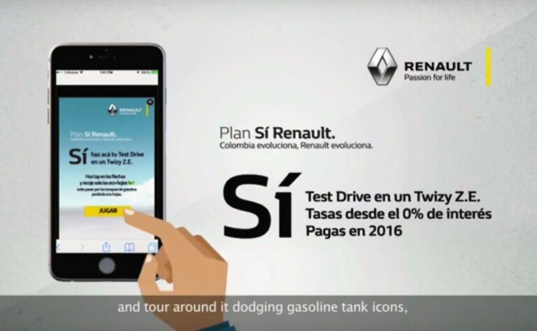 La campaña de publicidad móvil ganadora en la categoría de “Mejor uso de dispositivos móviles” fue creada y ejecutada por Adsmovil y Mobext en Colombia para el lanzamiento de Twizy, el auto eléctrico de Renault.