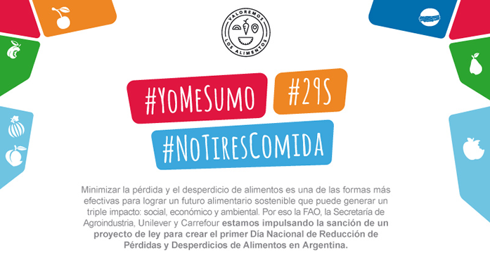 Unilever, junto con Carrefour y la Secretaría de Gobierno de Agroindustria de la Nación, con el apoyo técnico de la Organización de las Naciones Unidas para la Alimentación y la Agricultura (FAO), continúan impulsando la sanción de un proyecto de ley que propone establecer el 29 de septiembre de cada año como el Día Nacional de Reducción de Pérdidas y Desperdicios de Alimentos.
