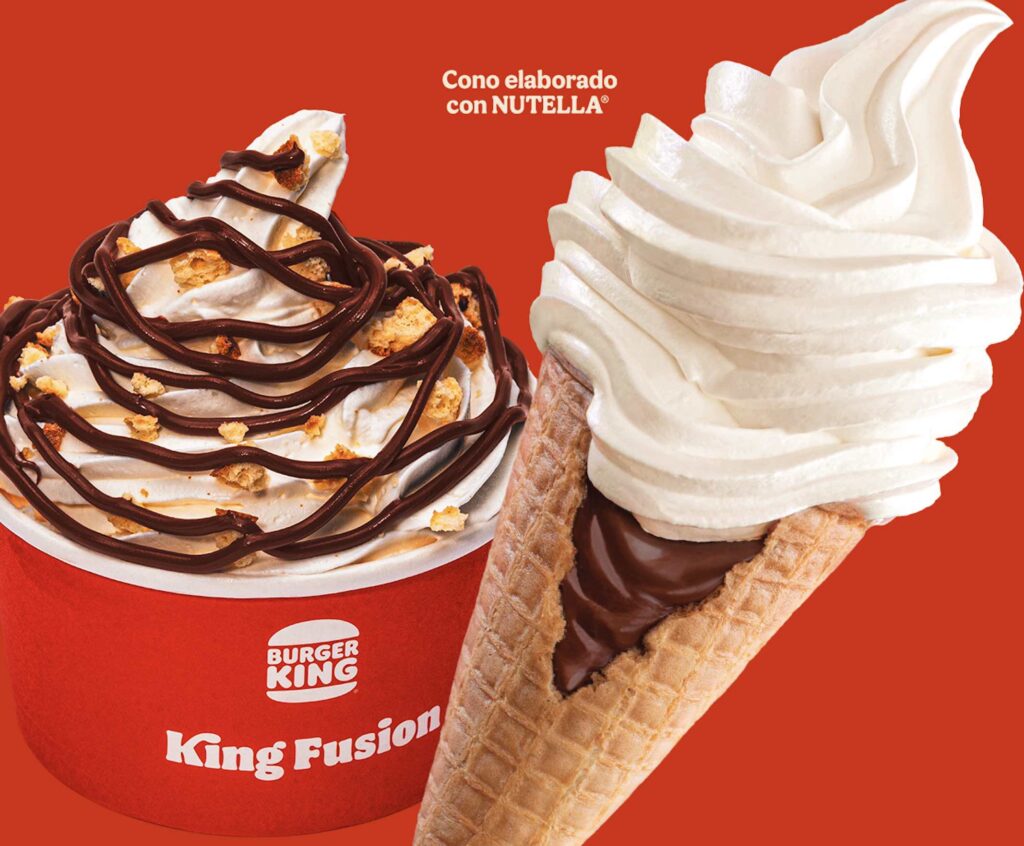Con esta propuesta, Burger King integra a Nutella a su parrilla, para aquellos invitados que buscan consentirse con un momento delicioso y suave. Nutella es uno de los productos más buscados en cualquier ocasión, por lo que su presencia en los postres de Burger King resalta el delicioso sabor de sus helados logrando una combinación perfecta.