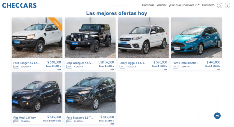 Checkars, a diferencia de otros sitios de clasificados, se posiciona como un full e-commerce en el segmento de los autos usados con una solución punta a punta: pago vía transferencia online, gestión digital de trámites, cobertura mecánica de 6 meses y entrega a domicilio sin que esto implique costos adicionales para los usuarios. Checkars cuenta con un inventario propio – de 50 vehículos – y todos sus vehículos tienen menos de 7 años de antigüedad y de 100.000 Kms.
