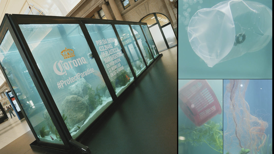 Como parte de su campaña en contra del plástico en los mares, Corona instaló un tanque de 7 metros que simula una pequeña porción de un ecosistema marino. Esta gran instalación no se trata únicamente de rocas y plantas, sino de la verdadera realidad del mar argentino: un mar contaminado por los más de 400 mil kilos de residuos plásticos que tiramos en él. En este tanque ingresará, proporcionalmente, la cantidad de plástico que por día se desecha en el océano Argentino.