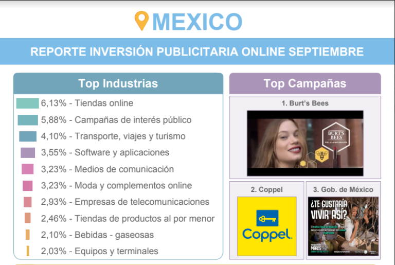 La compañía especializada en la medición de datos en plataformas digitales a través de inteligencia en tiempo real que busca mostrar resultados transparentes sobre el comportamiento de la publicidad online, ha publicado su reporte de inversión en México durante el mes de septiembre.