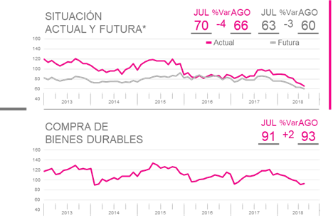 “A partir del segundo trimestre comienza a evidenciarse una caída generalizada de las expectativas, tendencia que se acentuó durante junio y julio. La caída deagosto fue impulsada por evaluaciones negativas respecto de la situación actual y futura, tanto en lo económico como en lo laboral”, explicó Julieta Dejean, Directora comercial de Kantar TNS. Agregó: “Así, las expectativas continúan a la baja, con un índice que se ubica en los valores más bajos de la serie histórica, cuyo piso se había registrado durante 2009”.