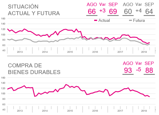 Las variables que determinan la estabilización del índice son la evaluación de la situación económica actual y las expectativas a futuro que crecen 3 y 4 puntos respecto de la medición de agosto.