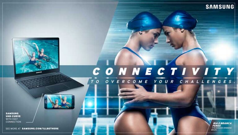 Samsung convocó a atletas latino-americanos, símbolos de superación en el mundo entero, para mostrar cómo sus dispositivos están presentes aun en aquellos momentos más difíciles. Bia y Branca (de la natación sincronizada de Brasil), Sebastián Keitel (del atletismo de Chile), Diego Rosati (del yudo de la Argentina), Claudia Rivero (del bádminton de Perú), Enrique Esqueda (del fútbol de México), Irving Saladino (del salto largo de Panamá) y Mabel Mosquera (del levantamiento de pesas de Colombia) han sido los personajes inspiradores.