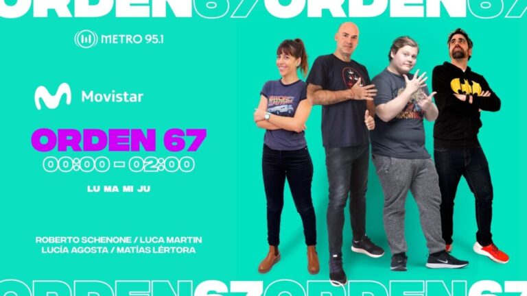 Orden 67 es el nuevo programa de Metro 95.1 que se emite de lunes a jueves desde la medianoche hasta las dos de la mañana. Roberto Schenone, Luca Martin, Lucía Agosta y Matías Lértora introducen a los oyentes en un mundo lleno de entretenimiento: videojuegos, e-sports (gaming), Youtube, tecnología, comics, y también lo nuevo en series, cine indie y clásico, comics, juegos de rol, coleccionables, cosplay y mucho más.