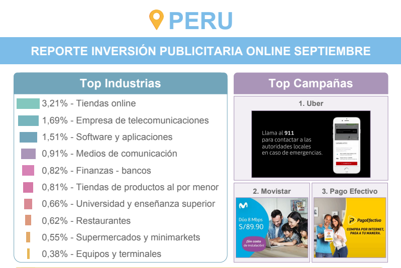 El estudio de la compañía especializada en la medición de datos, muestra las industrias que más invirtieron en plataformas digitales, los sitios más utilizados y las campañas más importantes de Perú en el mes de septiembre.